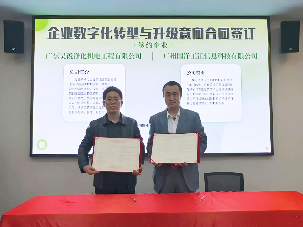 研討會期間,張勁松總經(jīng)理簽訂了潔凈技術(shù)行業(yè)數(shù)字化轉(zhuǎn)型合作意向書,未來昊銳凈化公司將繼續(xù)深化數(shù)字化轉(zhuǎn)型,為客戶提供更智能、更高效的凈化工程整體解決方案。中國潔凈技術(shù)行業(yè)協(xié)會秘書長張仲杰:"廣東昊銳的數(shù)字化轉(zhuǎn)型實(shí)踐為行業(yè)提供了寶貴經(jīng)驗(yàn),期待更多企業(yè)加入數(shù)字化生態(tài)建設(shè)。"